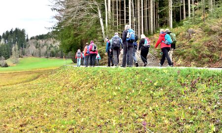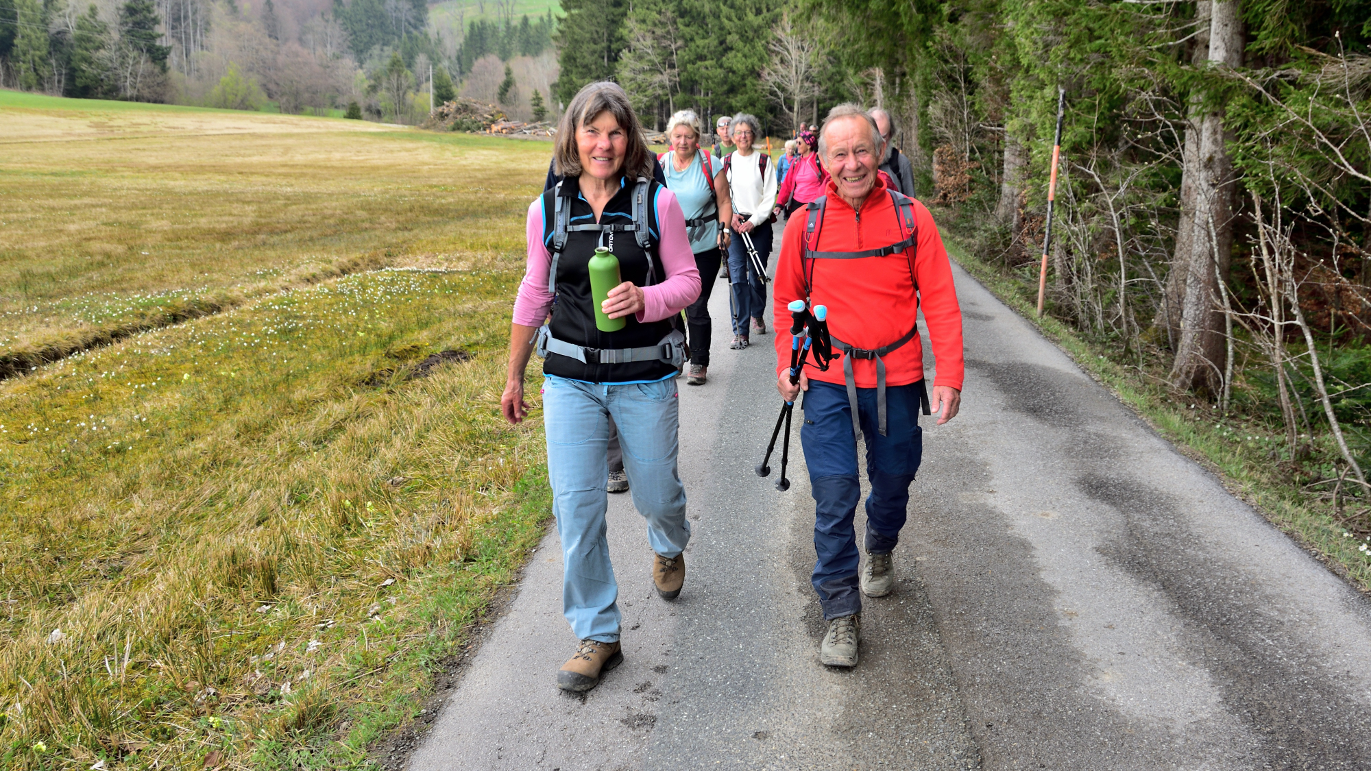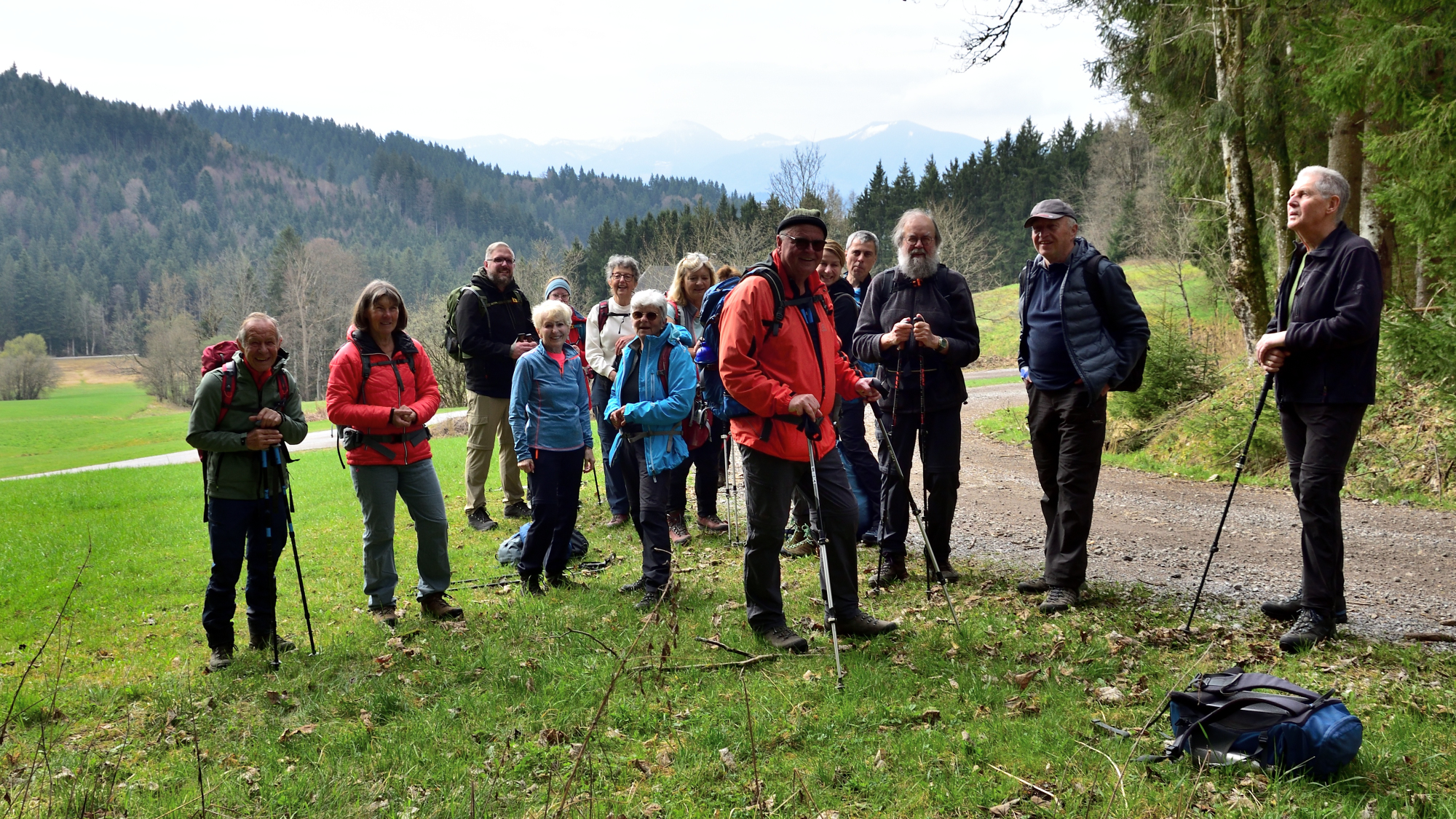 DAV Bad Griesbach-Pocking erwandert die Große Plaike und den Kolomansberg. Während sich in den Hochlagen der Alpen, ab etwa 1.500m Höhe, noch hartnäckig der Schnee hält, sind die Voralpen das ideale Wanderziel. Südöstlich vom Wallersee erstreckt sich ein teils bewaldeter Höhenzug auf dem sich schon von weitem zwei weißen Radarkugeln zeigen. Es ist der Kolomansberg mit seinen Nebengipfeln Lehmberg und Große Plaike. Diese drei Gipfel bieten gerade im Frühjahr herrliche Blicke ins Alpenvorland und in die noch schneeweißen Alpen. Für zwölf wanderbegeisterte Mitglieder vom Alpenverein Bad Griesbach-Pocking hatte sich Bergwanderleiterin Anita Kälker genau dieses Gebiet als Ziel ihrer Frühjahrswanderung ausgesucht. Ausgangspunkt war der Wanderparkplatz Wasenmoos oberhalb von Thalgau. Bei trockenem Wetter, aber leider bewölktem Himmel startete die Gruppe. Das erste Stück des Weges zog sich nach Norden. Schlüsselblumen, Lerchensporn und Sumpfdotterblumen blühten bereits in rauen Mengen und säumten den Weg. Oberhalb eines Wiesenhanges zeigte sich ein altes Anwesen. Das schwarze Holz der Gebäude und ein in voller Blühte stehender großer Baum zogen sofort die Blicke auf sich. Langsam gewann die Gruppe an Höhe und so zeigten sich auch schon die ersten schneebedeckten Berge der Osterhorngruppe. Nun schwenkte der Wanderweg in westliche Richtung. Das Gras der Freifläche war noch braun und überall zeigten sich junge Bäumchen die in ein paar Jahren den Hang wieder bewalden. Beim nächsten Wegweiser lud eine Bank ein zur kurzen Rast. Anschließend ging es in den Wald. Aus dem Wanderweg wurde ein Pfad der die Gruppe hinauf zum Steinwandl führte. Die Wolkendecke lockerte etwas auf und kaum ließ sich die Sonne blicken ging es auch mit den Temperaturen nach oben. Bänke und Tische auf dem herrlichen Aussichtsplatz wurden sofort in Beschlag genommen. Gerne machte man hier eine längere Pause. Nach Norden schweiften die Blicke über den Wallersee hinaus ins Alpenvorland bis zu den Windrädern im Kobernaußer Wald. Nach Süden gäbe es eine herrliche Sicht auf die Berge, aber leider trübte Saharastaub die Luft. Anschließend folgte wohl der schönste Abschnitt der Tour. Ein Höhenwanderweg zieht sich nun immer auf 950 m bis gut 1.000 m Höhe von West nach Ost. Ein schmaler Pfad leitete die Wanderer durch den noch lichten Bergwald bis zur nächsten „Freisicht“ hinüber zu den Radarkugeln am Kolomansberg. Wäre jetzt nicht der Saharastaub in der Luft gäbe es freie Sicht auf das Tennengebirge, den Dachstein und die Berchtesgadener Alpen. Es folgte der unscheinbare Gipfel der Großen Plaike, 1.034 m. Das Gipfelkreuz versteckte sich zwischen den Bäumen. Schon etwa einen halben Kilometer weiter wartete schon der nächste Rastplatz beim Heimkehrerkreuz mit Wallerseeblick. Im leichten Auf und Ab wanderten die Bergler nochmals vorbei an einem Gedenkkreuz bevor der baumlose Höhenrücken vom Lehmberg die Wanderer zum Kolomanstaferl brachte. Nun zeigte sich auch der westliche Teil vom Mondsee und der gleichnamige Ort. Auch die Kirche auf dem Kolomansberg war nun zu sehen. Nun schwenkte die Route nach Süden hinab in die Kolomansenke und sogleich wieder steil bergauf. Über den Nordhang erwanderten die DAVler nun den Kolomansberg. Mit 1.100m Höhe war er der höchsten Punkt der Wanderung. Oben angekommen war erstmal verschnaufen angesagt. Natürlich wurde auch die Kirche besichtigt. Sie ist die älteste Holzkirche Österreichs und ein wahres Kleinod. Den Innenraum der Kirche schmücken zahlreiche Votivgaben und Sterbebilder. Nach einer weiteren Pause ging es im Anschluss auf dem Wanderweg 8 nur noch bergab. Nach 150 Höhenmetern verwies ein Wegweiser nach Westen. Auf Schotterwegen und schmalen Sträßchen marschierten die DAVler nun durch die malerische Kulturlandschaft des Thalgaus. Es ging vorbei an alten Gehöften und verstreuten Anwesen inmitten sattgrüner Wiesen. Ständig zog die steil abfallende Drachenwand, der Schober und der Frauenkopf die Blicke auf sich. Kurz nach 15.00 Uhr erreichten die Wanderer wieder den Ausgangspunkt. Natürlich ging es später noch zur wohlverdienten Einkehr im nahen Henndorf.