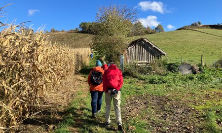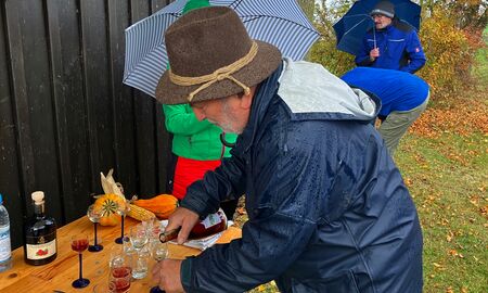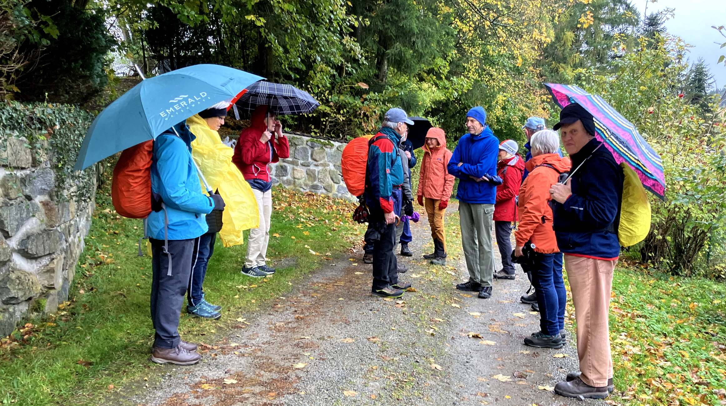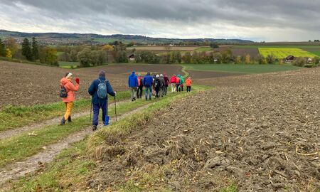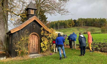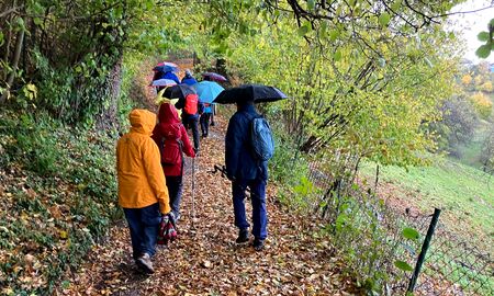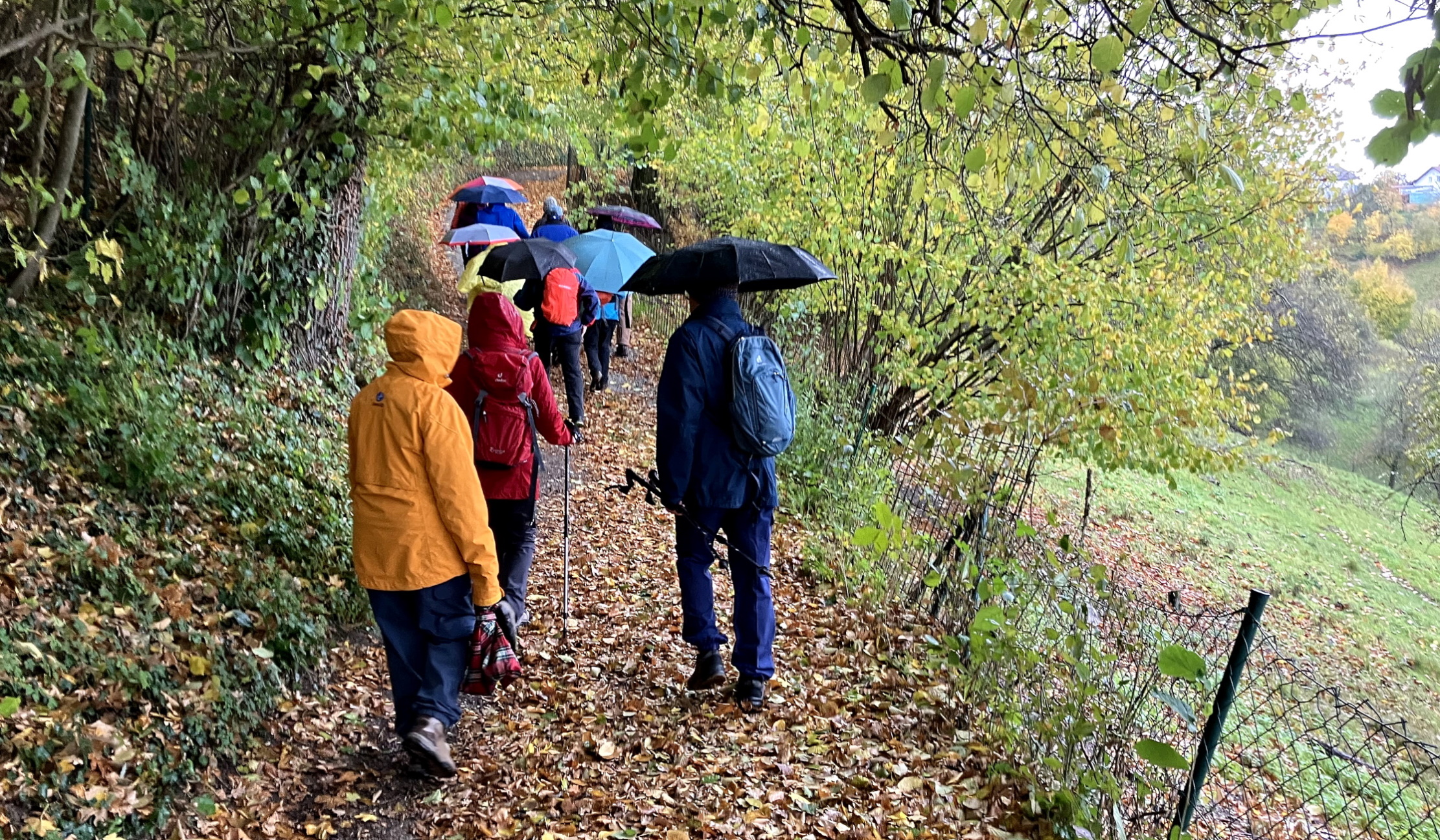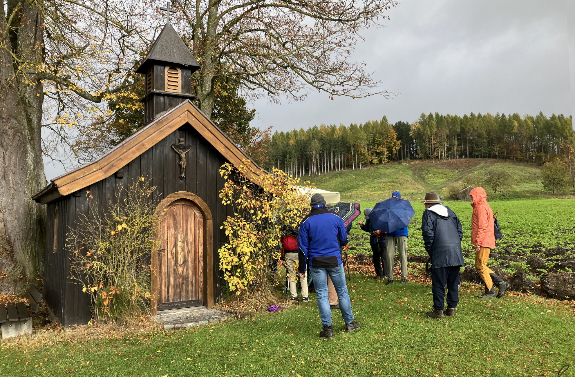 Die letzte offizielle Wanderung der DAV-Sektion Bad Griesbach für dieses Jahr unternahmen 17 wetterfeste Wanderer und erkundeten unter Tourenbegleiterin Irene Graw die Umgebung von Bad Griesbach. Beim Treffpunkt am Sportgelände regnete es noch und mit Schirmen und Regencapes ausgerüstet marschierten die Teilnehmer trotz des widrigen Wetters los und schon nach kurzer Strecke hörte der Regen auf und es ging auf dem Höhenweg Richtung Kurgebiet. Beim durchqueren des Kurwaldes schien bereits die Sonne, das bunte Laub unter den Füßen und an den Bäumen hob die Freude auf die weiteren Höhepunkte der Wanderung. Angekommen an der Kurverwaltung wurde eine kurze Pause eingelegt, um dann entlang des Via Nova Weges nach Oberham und weiter nach Aicha im Tal zu gehen. Dicke Regenwolken zogen auf und die Gruppe hatte das Glück die kleine Kapelle bei Aicha noch zu erreichen, denn dort erwartete Gerhard Graw die hungrigen Wanderer mit einer Brotzeit und einer flüssigen Belohnung in Form von selbstgemachten Likören. Ein kurzes Unwetter mit heftigem Sturm und Regen ließ die Teilnehmer in die Kapelle flüchten und so wurde noch ein kurzes Dankgebet für die unfallfreien Bergtouren gesprochen, um dann die Tour weiter nach Parzham fortzusetzen. Nach kurzer Pause am Bruder Konrad Hof ging es bei Sonnschein weiter nach Moos und Amsham dem Ziel einer ausgiebigen Rast entgegen. Doch bevor die Wanderer sich mit Kaffee, Kuchen und herzhaften Gerichten stärken konnten, mussten sie noch ein paar steile Höhenmeter überwinden, um dann im Cafe Maierhof 2 einzukehren. Gemütlich in der warmen Gaststube zu sitzen und die angebotenen Speisen zu verzehren genossen alle Teilnehmer, denn die letzten Meter bis zum Startpunkt der Wanderung mussten noch zurückgelegt werden. Zufrieden mit dem Wettergott, der doch noch die Sonne scheinen ließ, endete der letzte Wandertag der Saison 2025 mit glücklichen Teilnehmern.